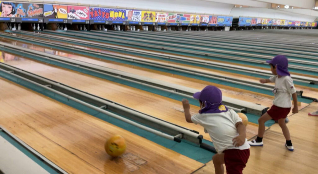 幼稚園から徒歩で10分ほどにあるボウリング場【太洋ボウル】の御厚意により、毎年年長児が体験ボウリングをさせていただいています。