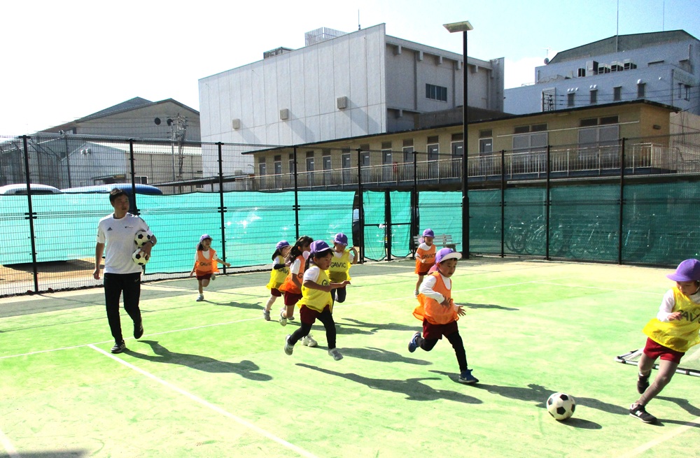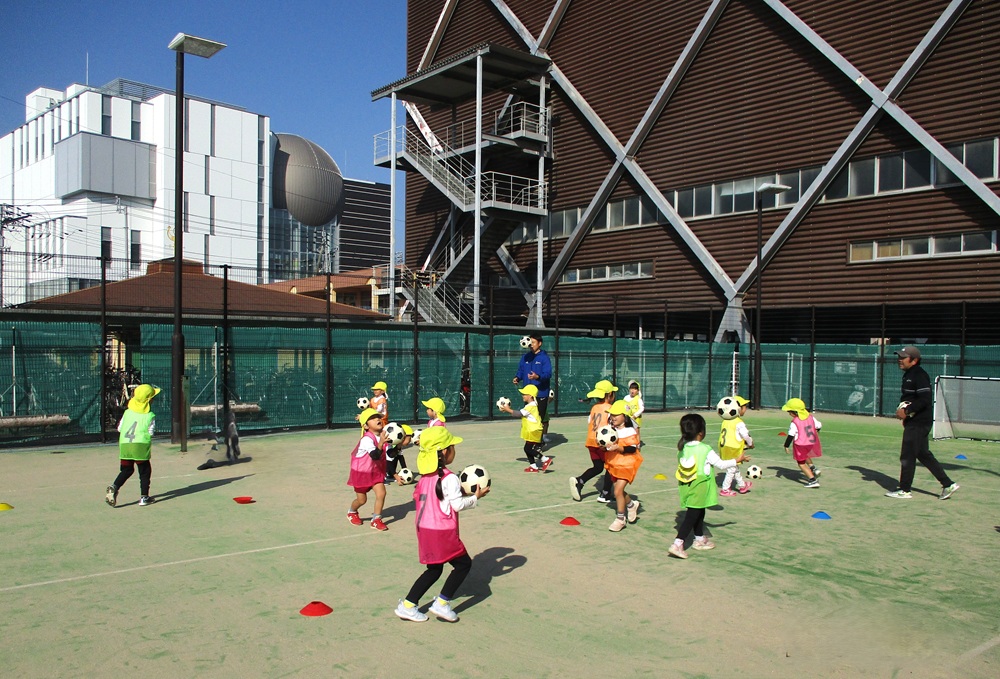 令和7年11月14日(金)香川県サッカー協会より2名の講師を迎え、年中・年長児対象にキッズサッカー巡回指導が行われました。