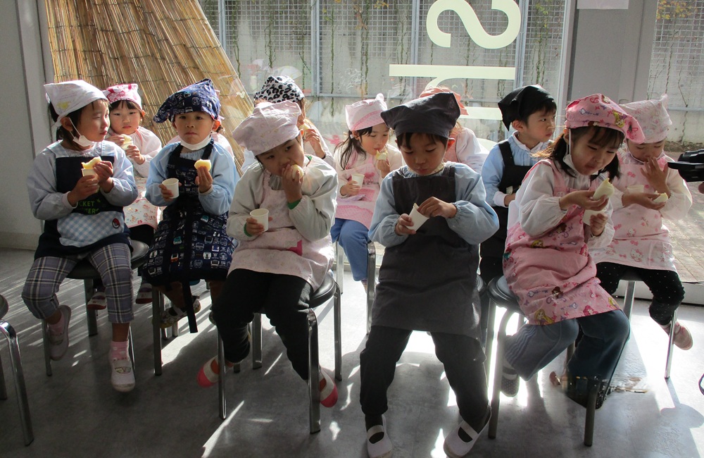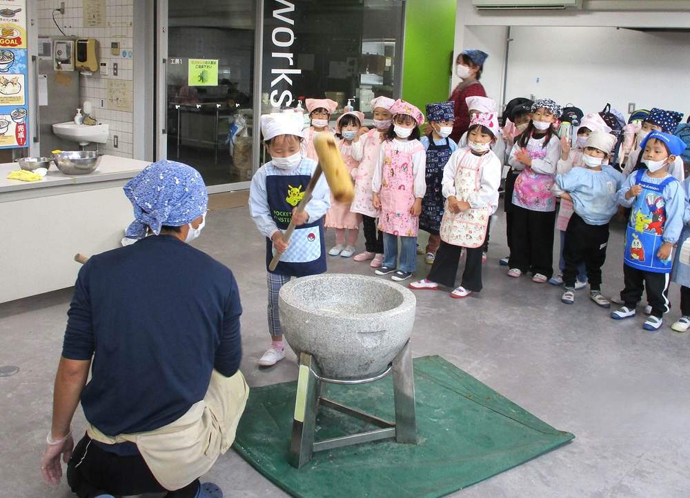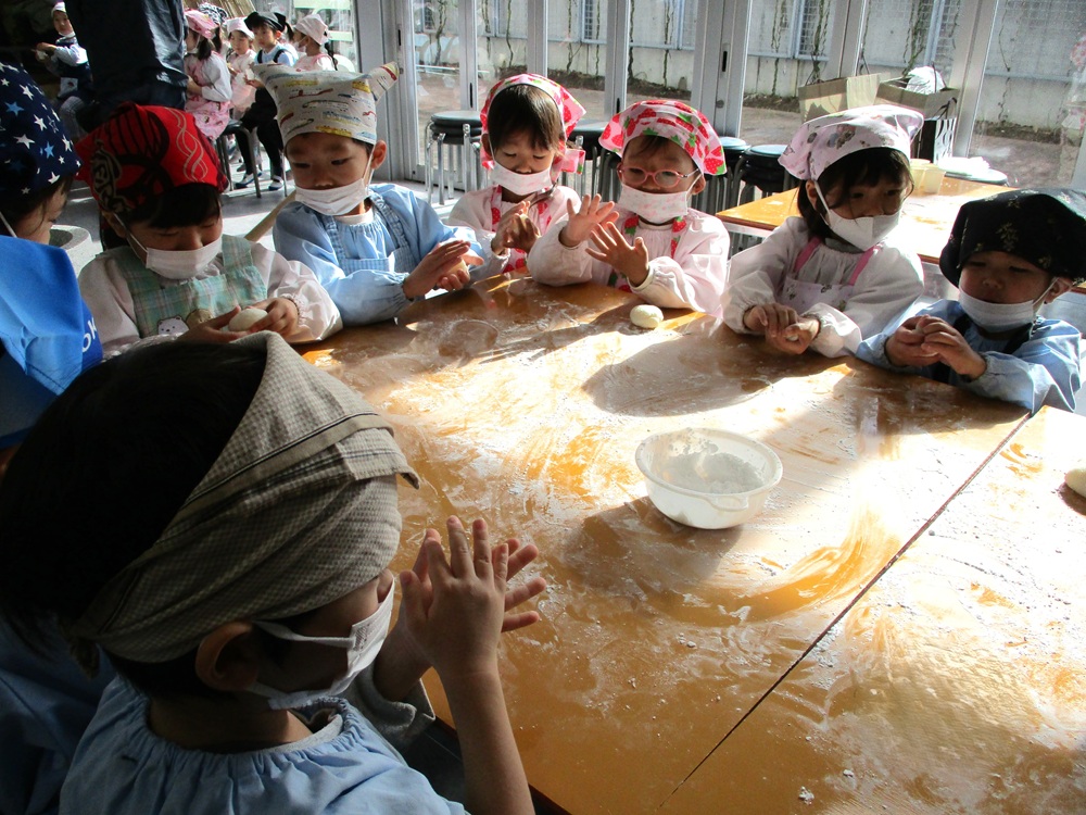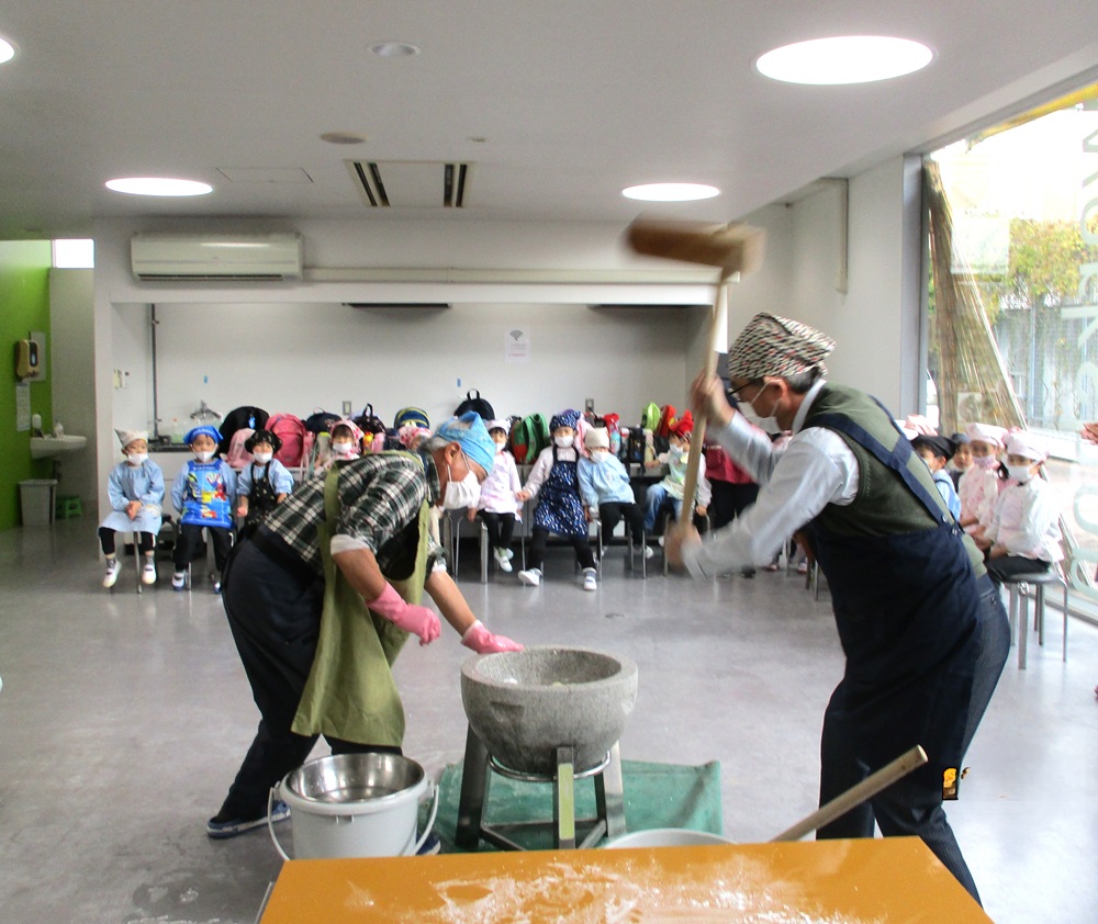 合間では、出来たてのおもちを自分で丸めながらいただきました。「おいしい~」「おかわりある?」と、ぺろっと平らげた子どもたち、後のお弁当に響きそうでしたが、別腹のようでした(笑)