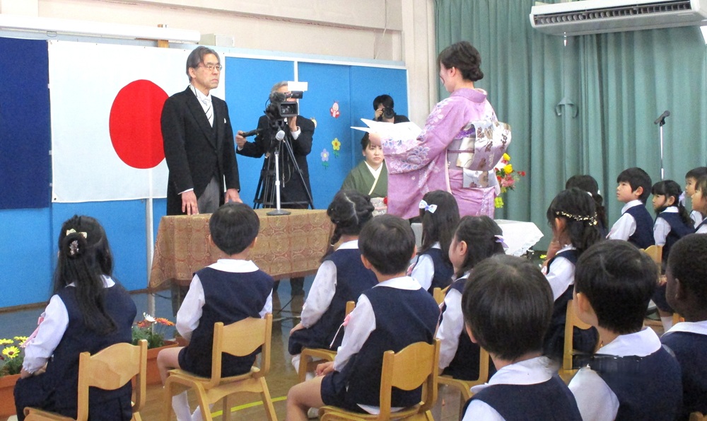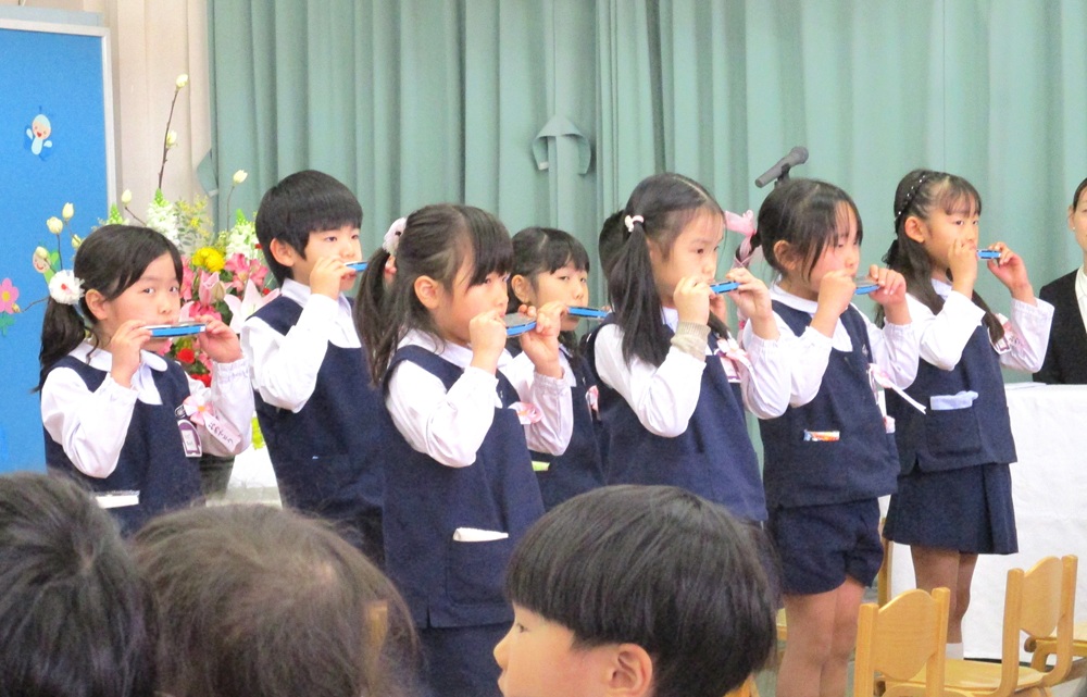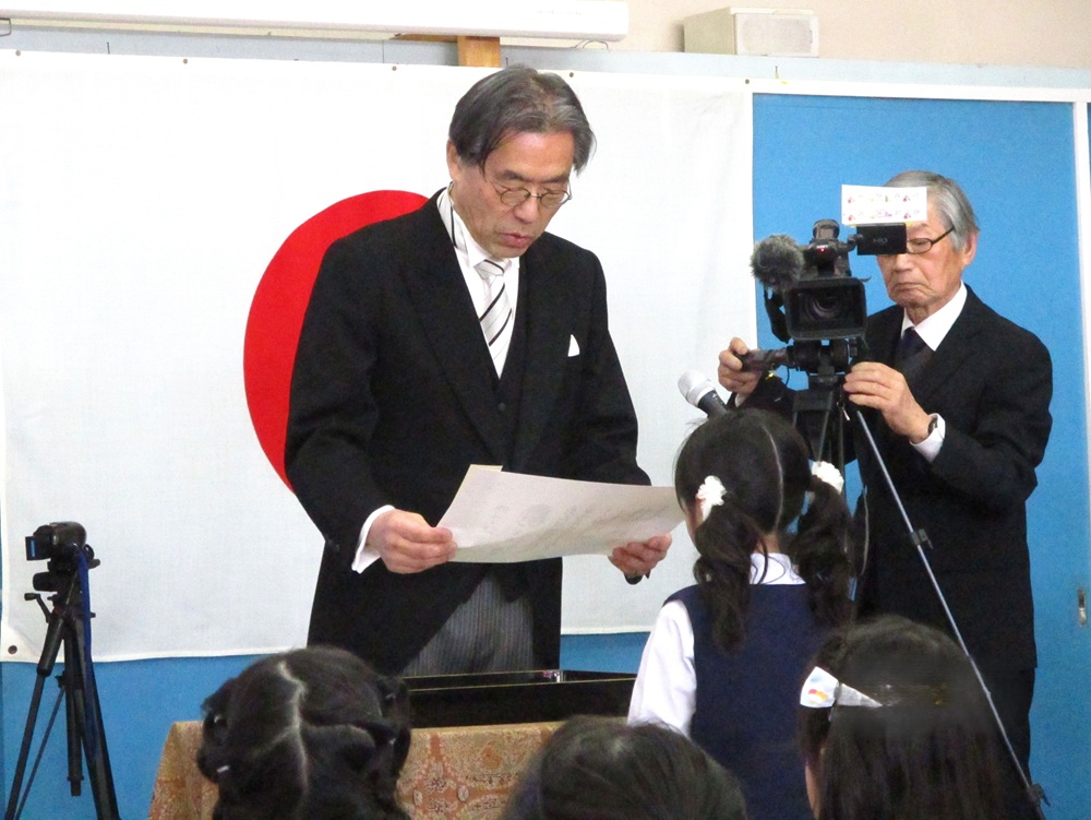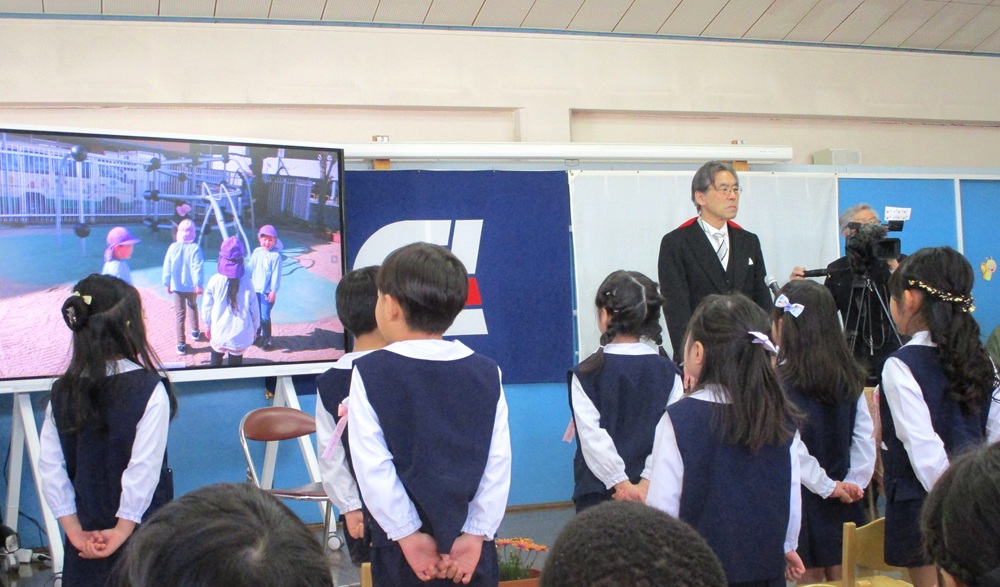 園長先生あいさつ、PTA会長あいさつ、在園生による送る歌と式は進められていき、卒園生のお別れの言葉では、思い出を一人一人が語った後、園での子どもたちの様子を動画で流すと、成長を実感しあちらこちらで涙ぐむ姿がみられました。