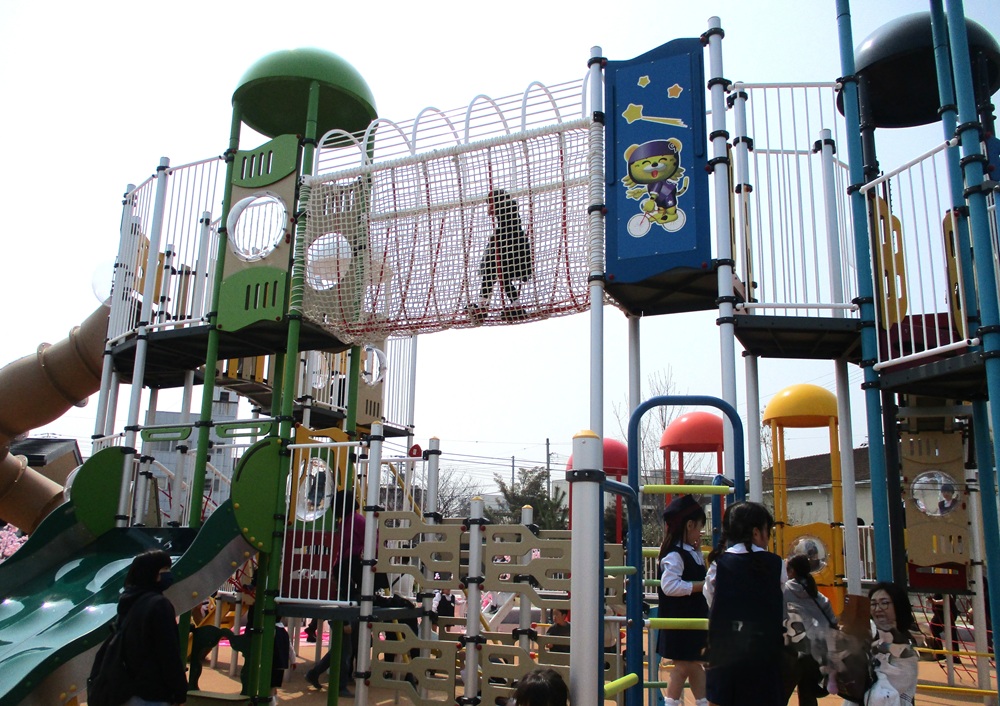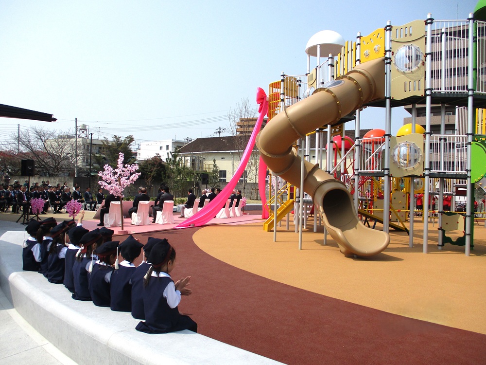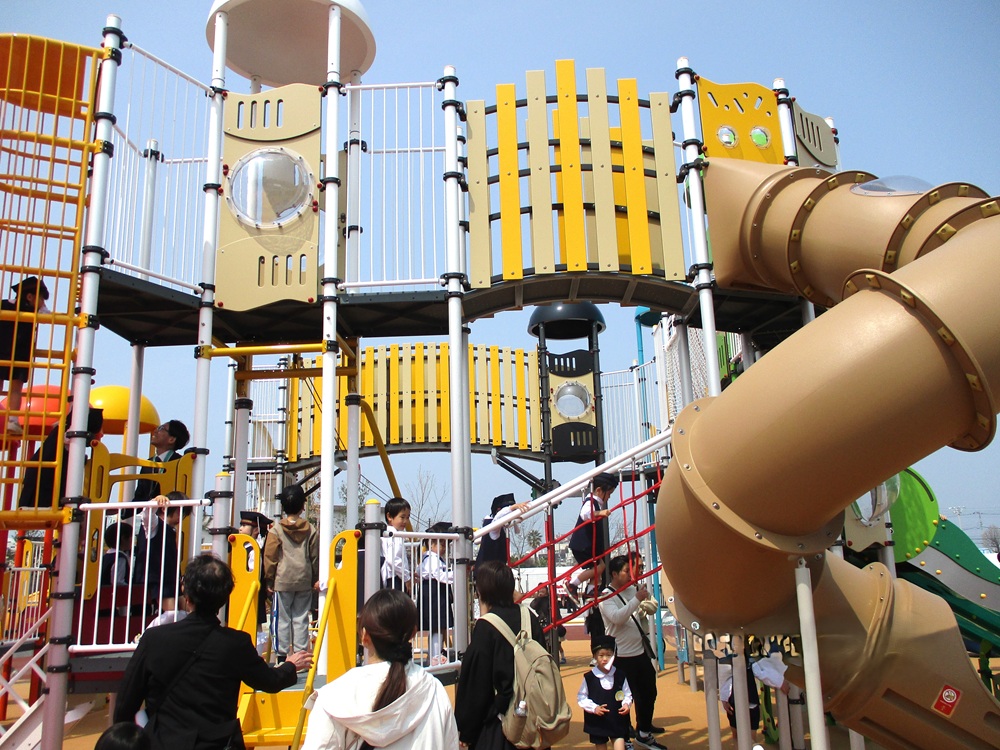 終了後は、待ちに待った真新しい遊具にまっしぐら。あちらこちらで歓声をあげながら、思う存分遊ばせていただきました。